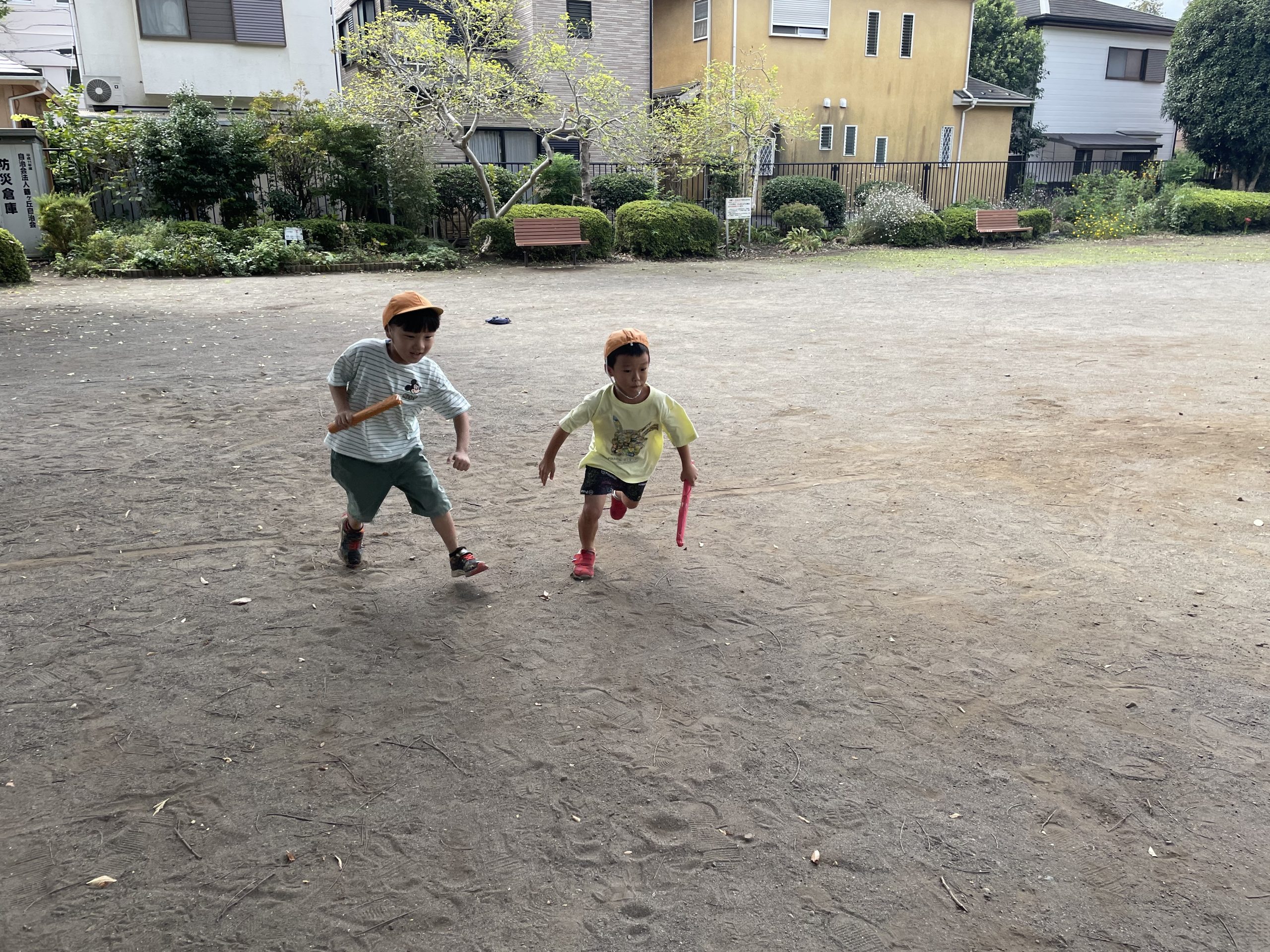 今日は南台6丁目公園でリレーの練習をしました。その後、いつもお世話になっている公園の落ち葉拾いをしました!