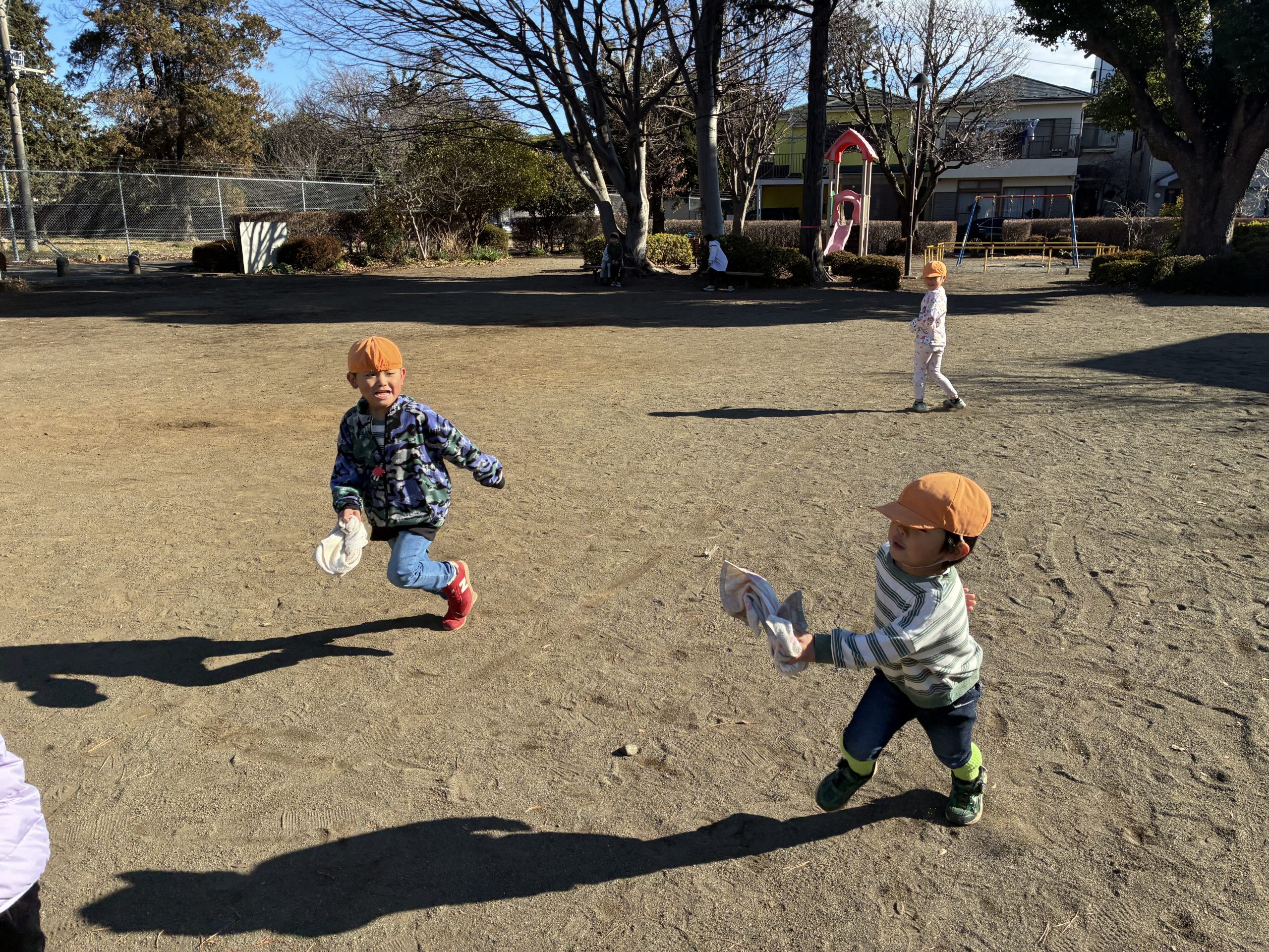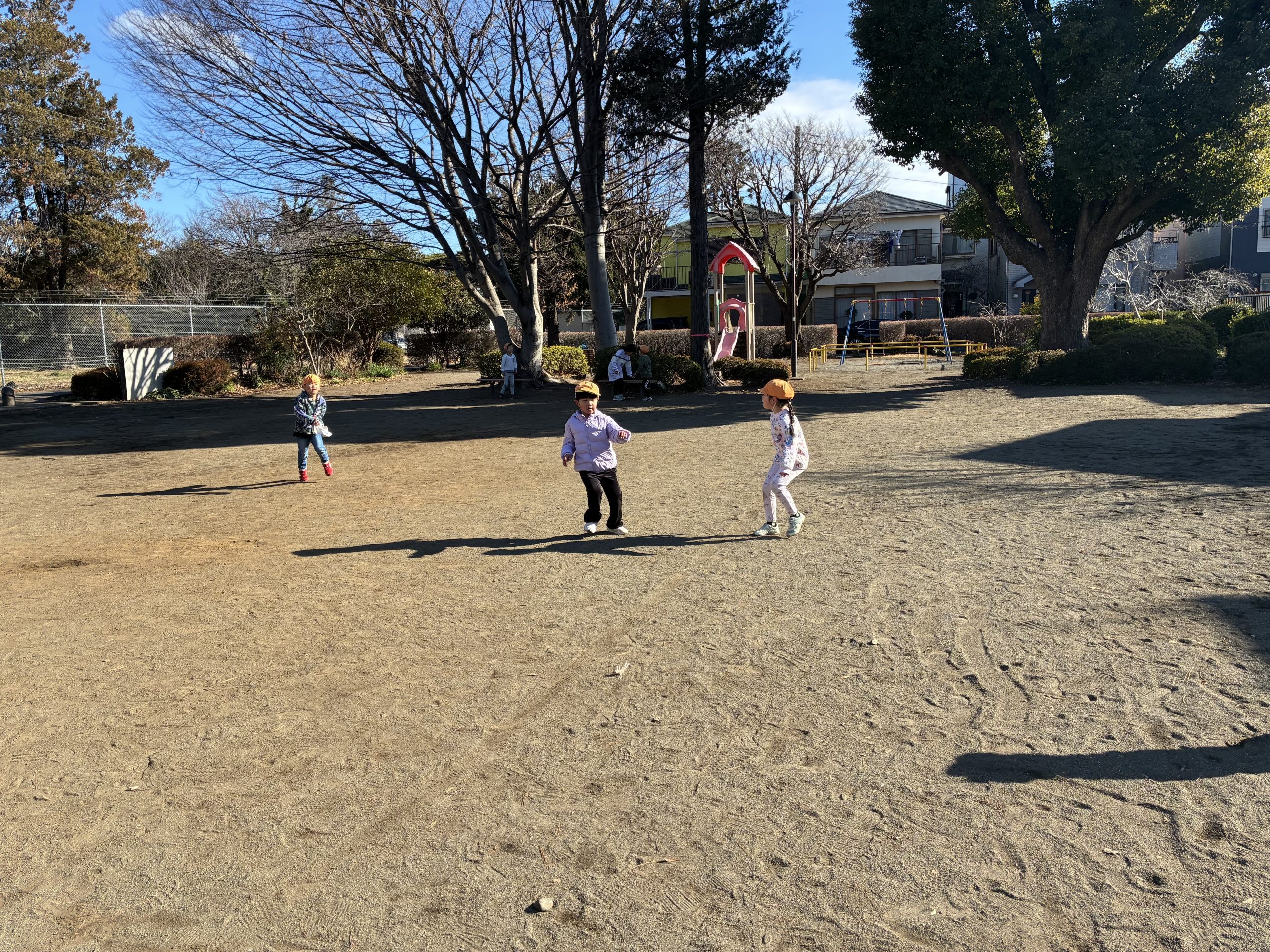 火曜は南台6丁目公園へ行きました!この日も小学生がいたので一緒に遊べた園児達はとても嬉しそうでした!その後は公園をはしごして、双葉公園でも遊びました、