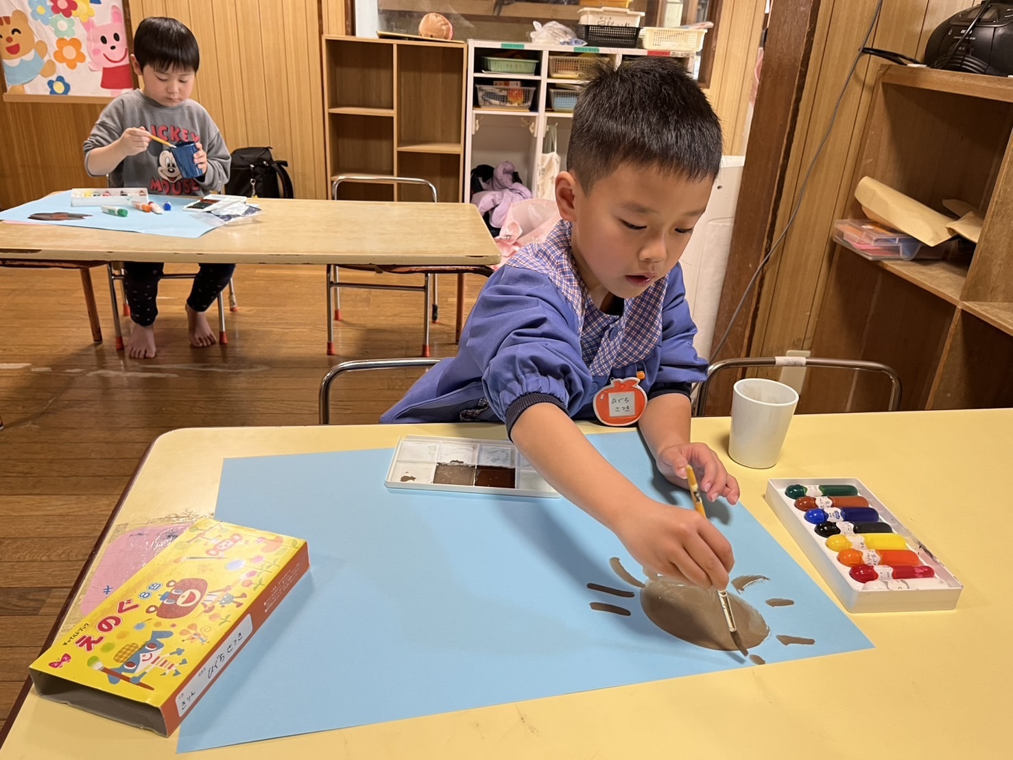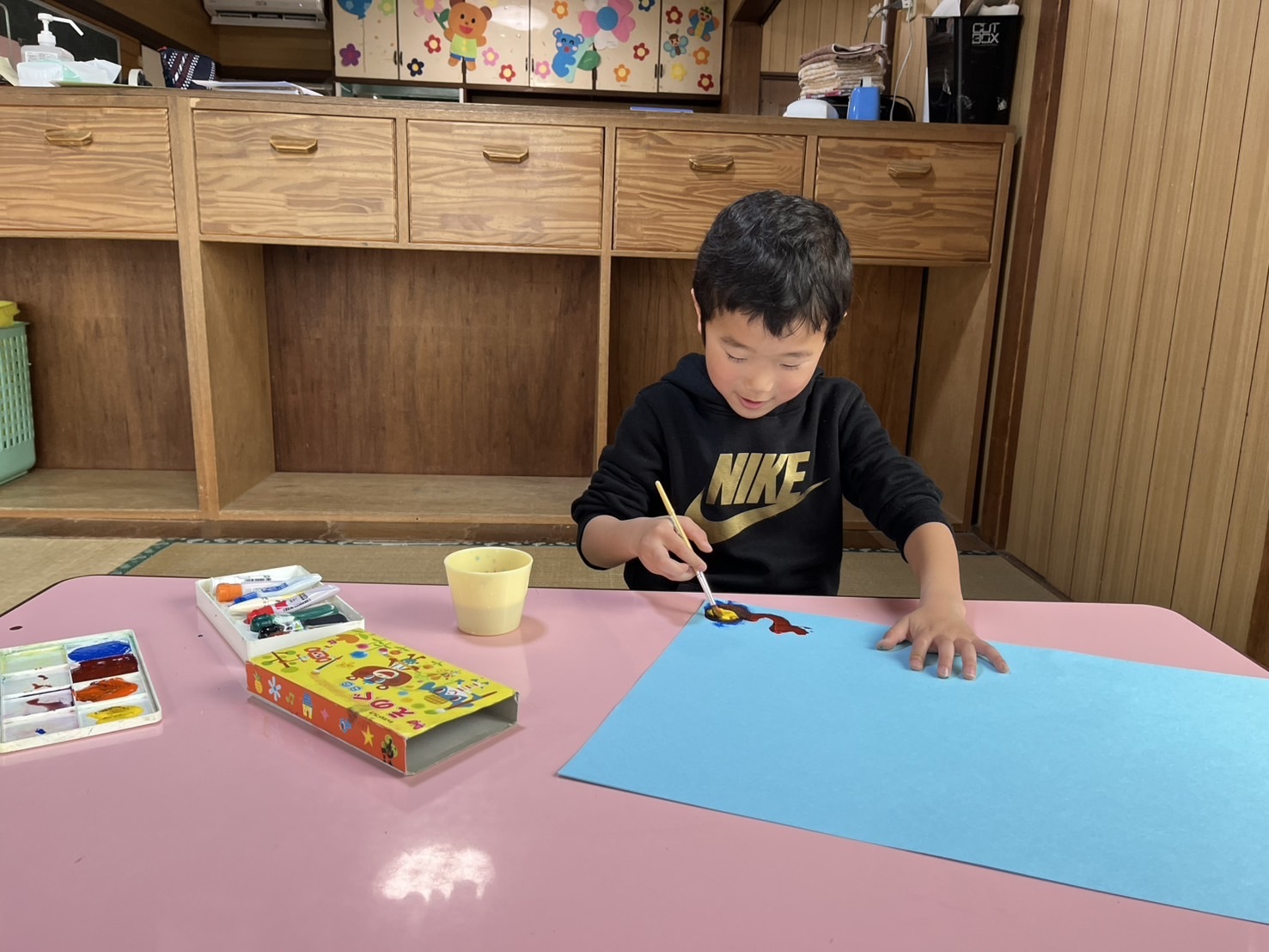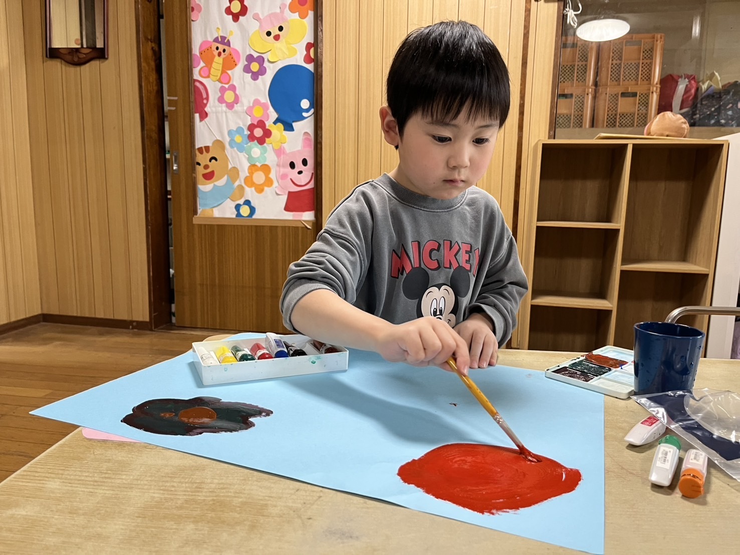 絵の具を使って自由に絵を描きました。色々な色を混ぜて、色の変化を楽しんでいました。