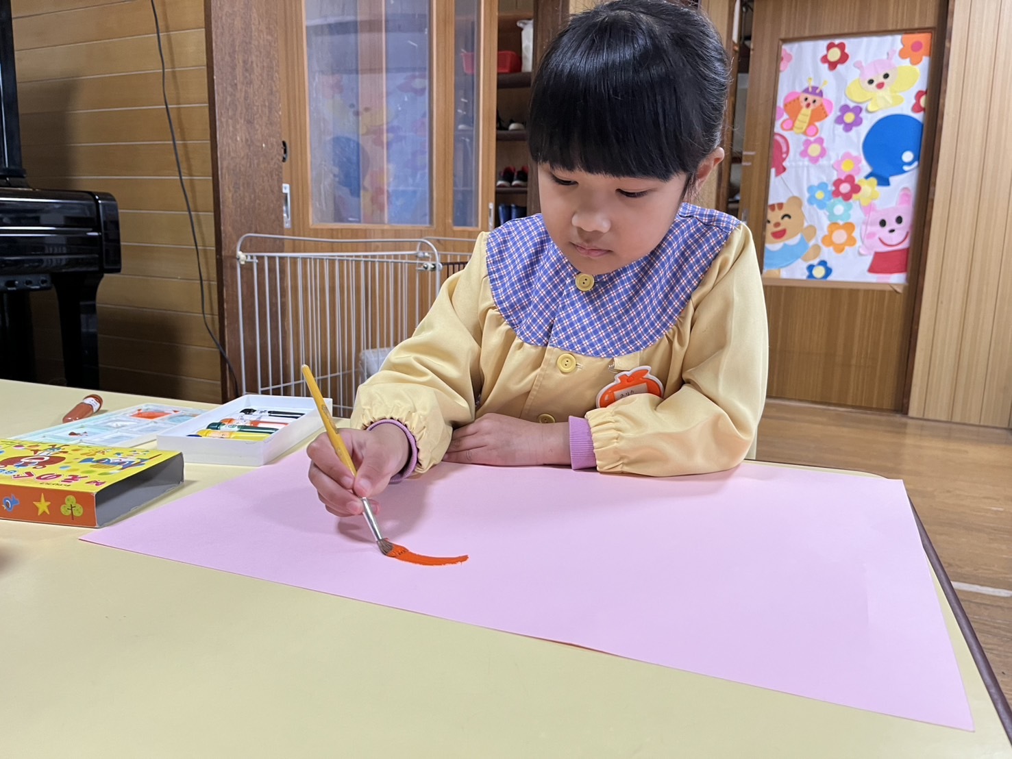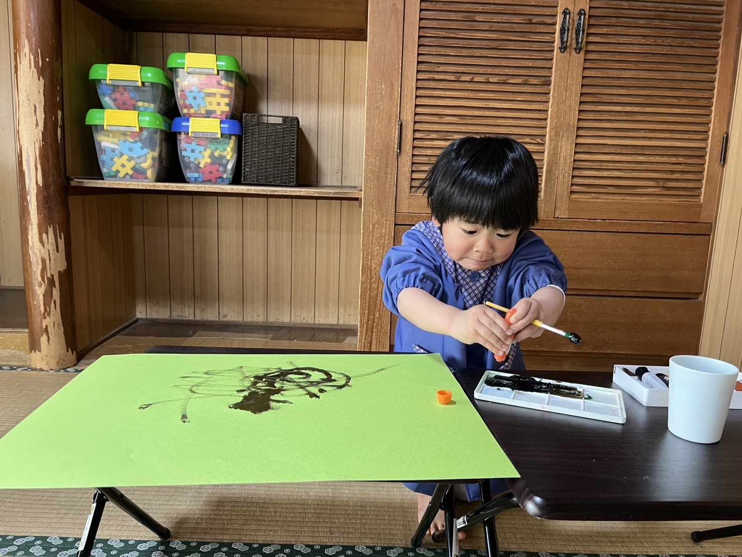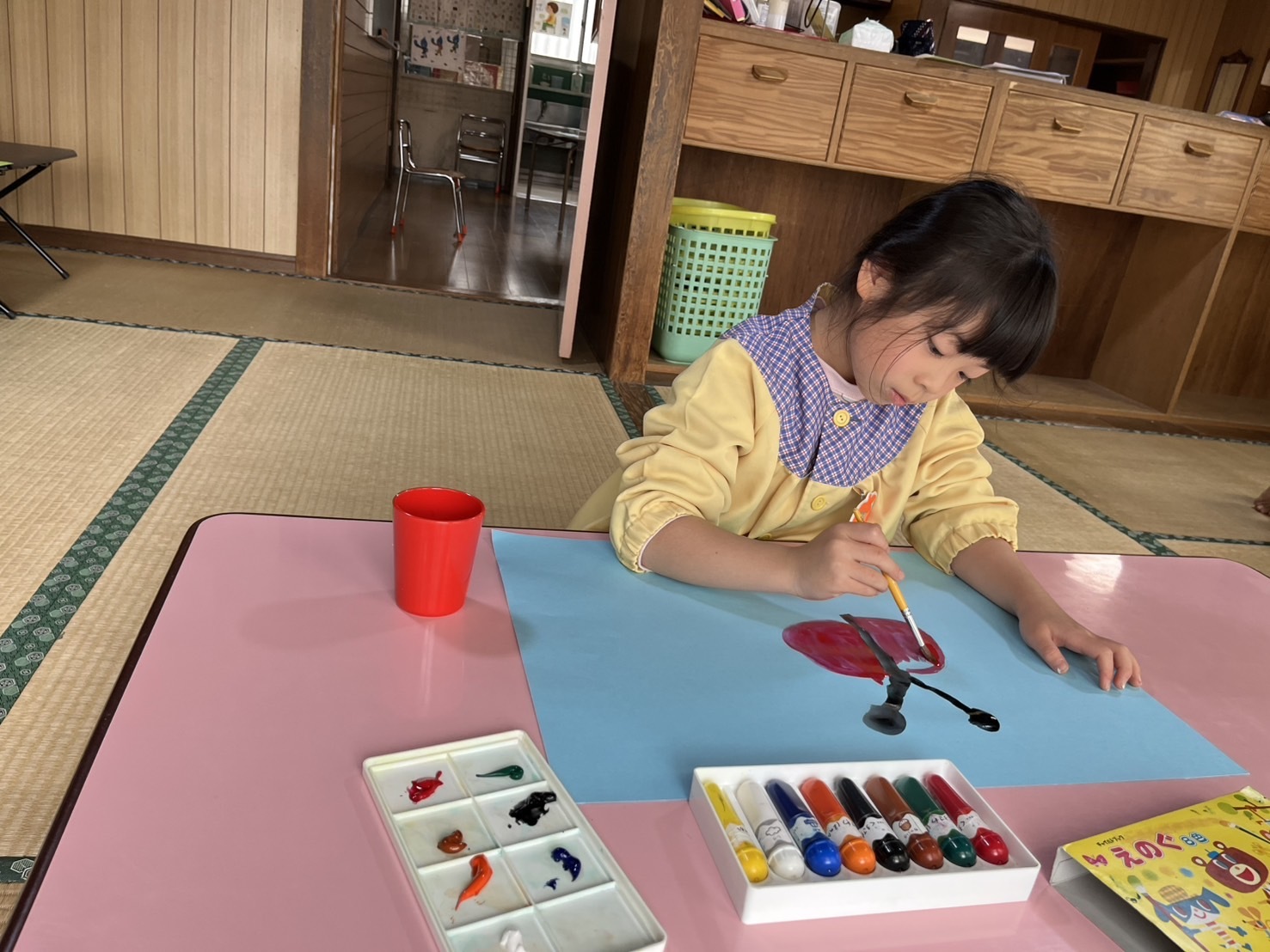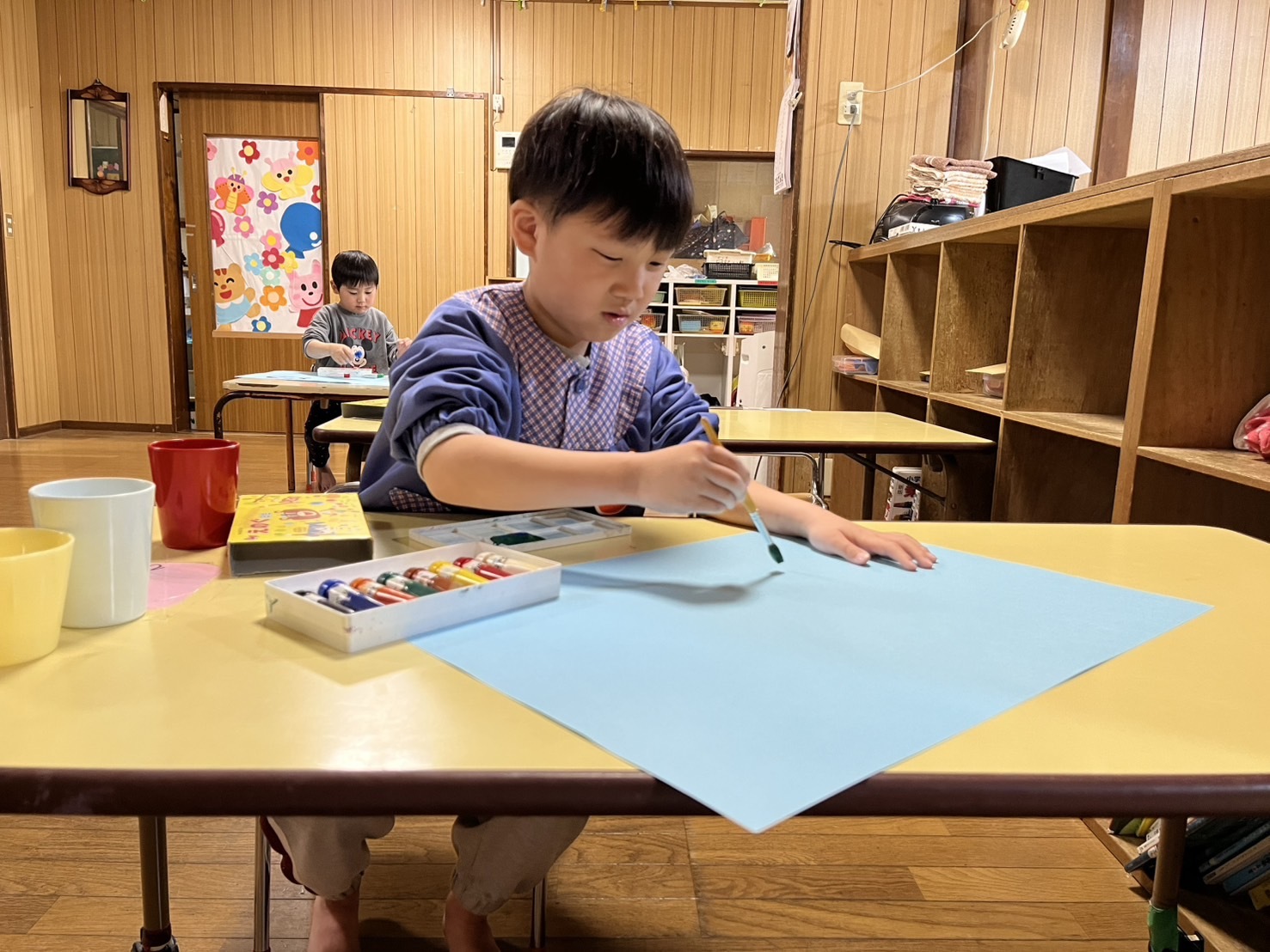 絵の具を使って自由に絵を描きました。色々な色を混ぜて、色の変化を楽しんでいました。
